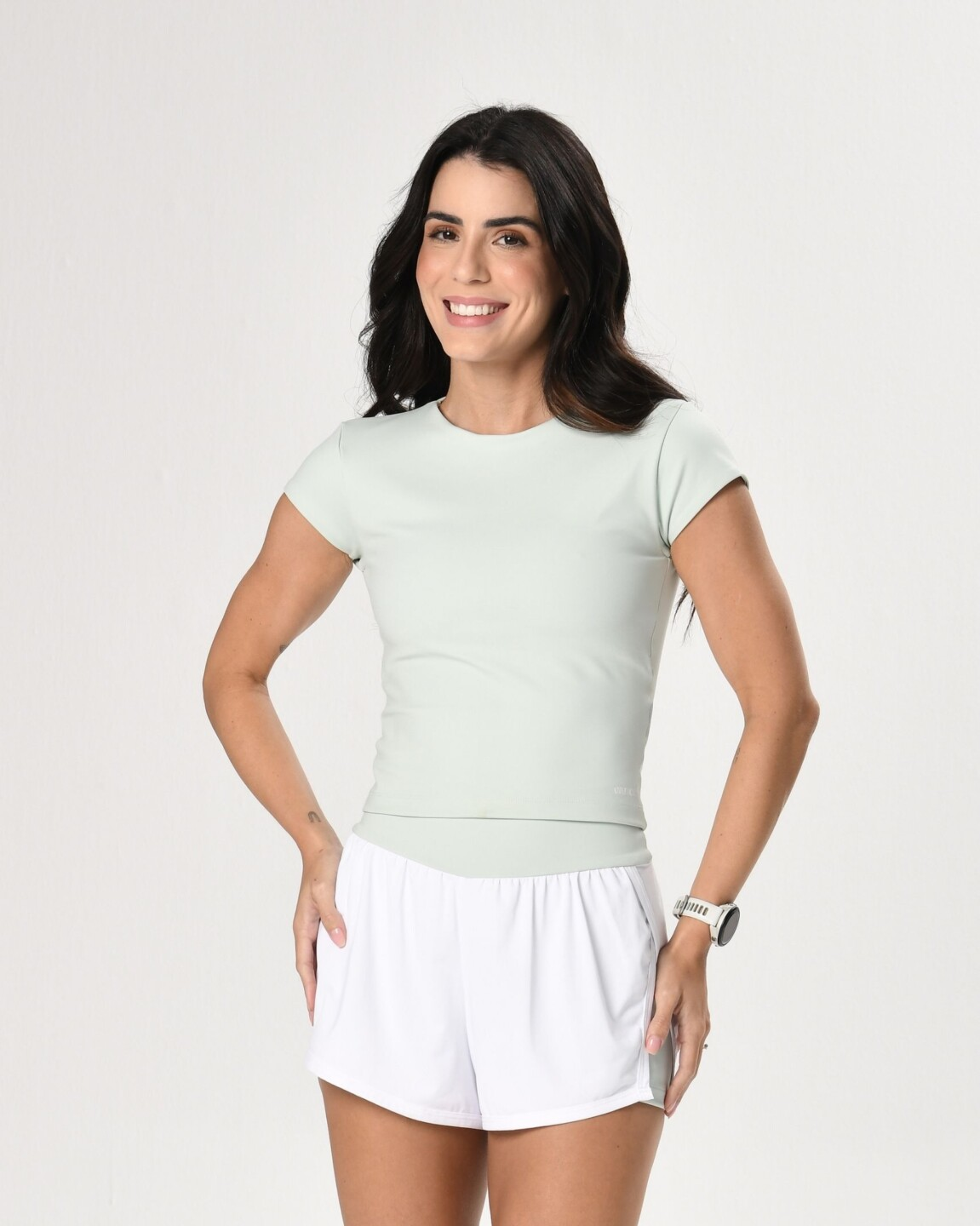 Essa é, sem dúvidas, a babytee mais linda e prática que você vai conhecer! Com modelagem impecável e top embutido, ela garante sustentação e conforto sem precisar de nenhuma outra peça por baixo.