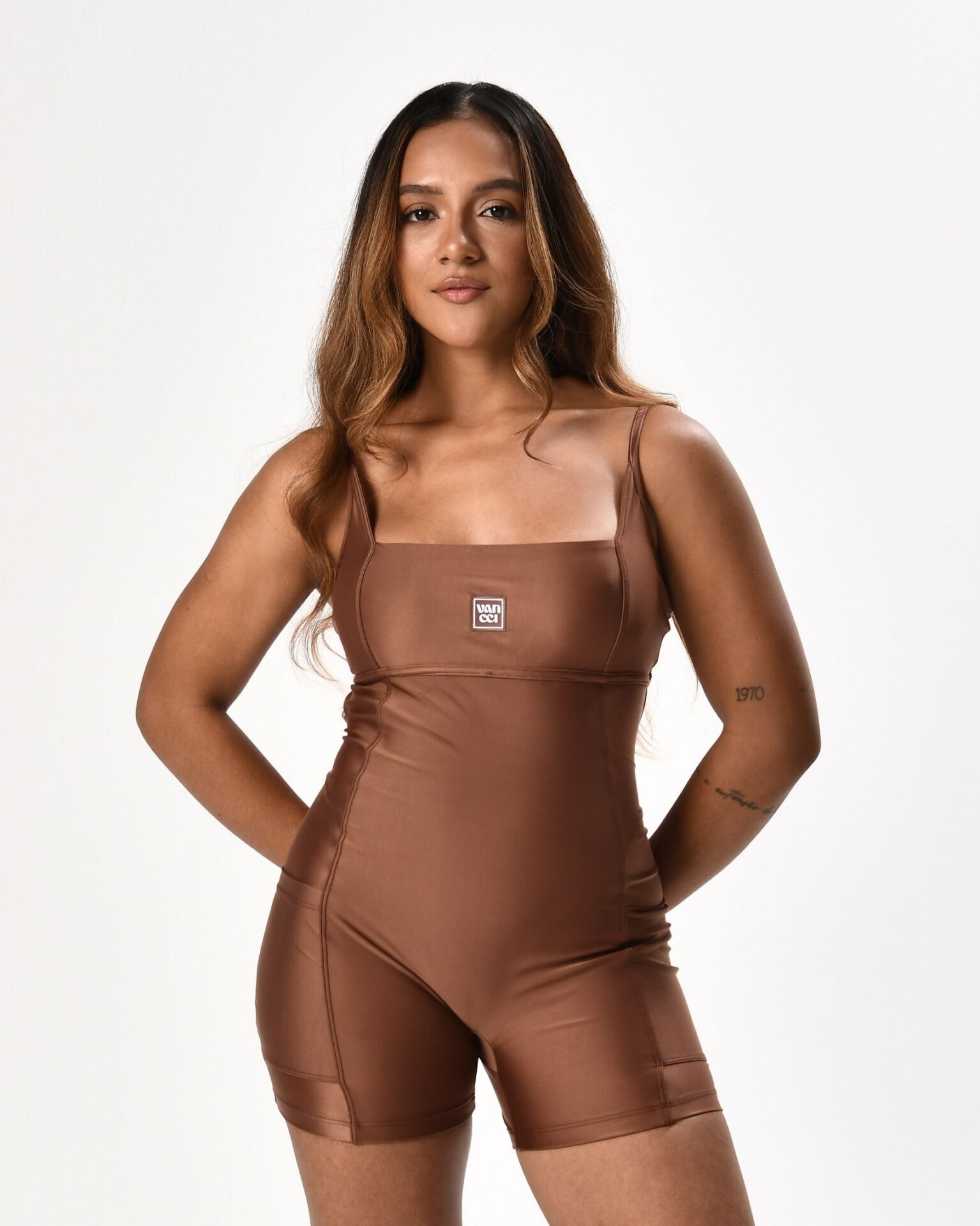 A linha “ATK” da Vancci usa um tecido de poliamida com acabamento brilhoso e toque aveludado. A escolha ideal para quem busca conforto e um visual sofisticado. Seu toque macio proporciona uma sensação agradável ao vestir, enquanto o brilho sutil adiciona personalidade e estilo ao look.