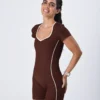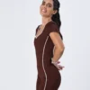 Com decote em V, mangas curtas e um recorte nas costas que é puro charme, ele entrega um visual sofisticado e feminino sem perder a pegada esportiva. Os recortes contrastantes alongam a silhueta e valorizam o corpo de forma impecável!