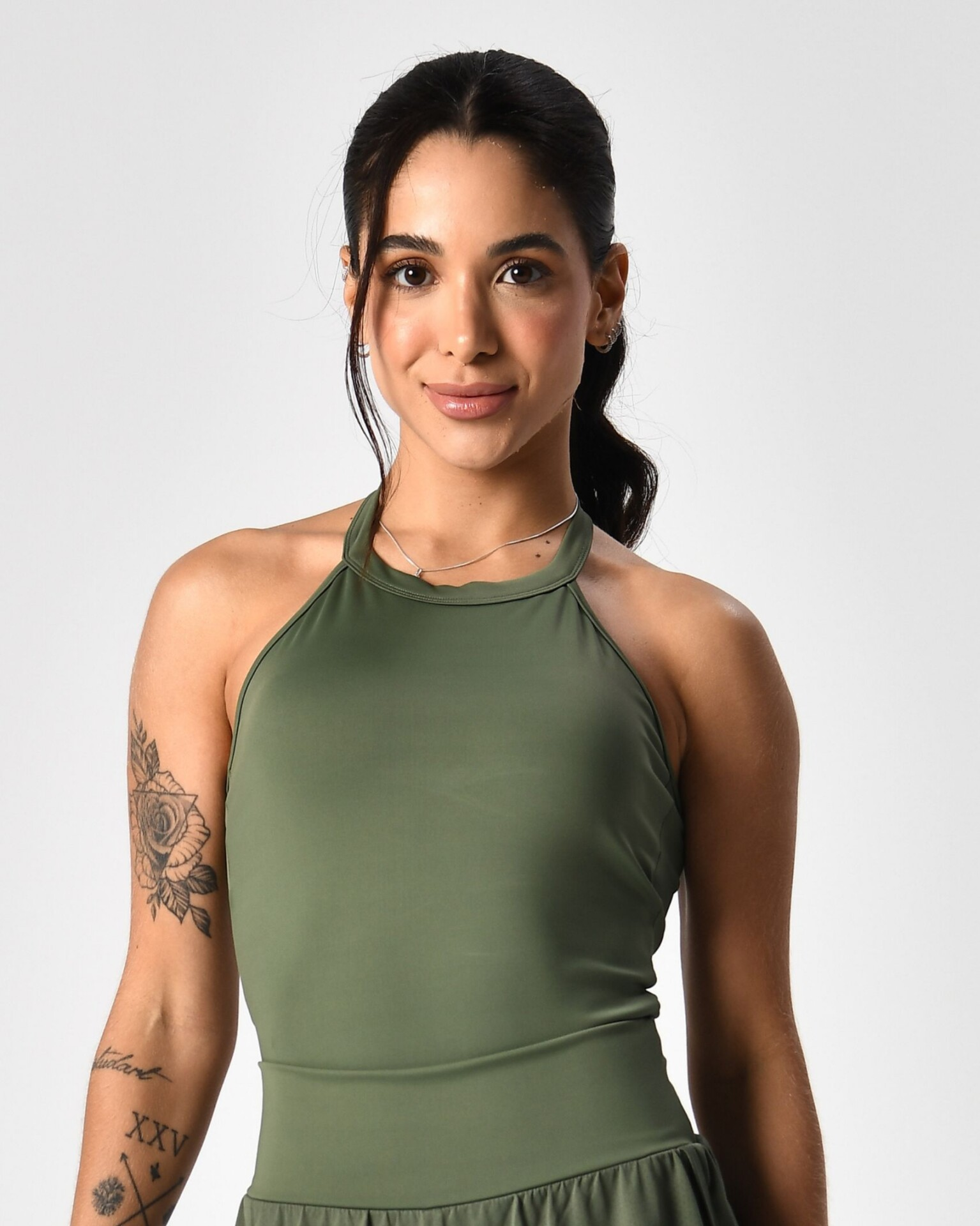 É daquelas peças que a gente bate o olho e se apaixona instantaneamente!! Com modelagem ajustada ao corpo, ela valoriza a silhueta e traz um visual super feminino. O decote halter deixa ombros e costas em destaque, criando um design lindo e diferente que chama atenção na medida certa.