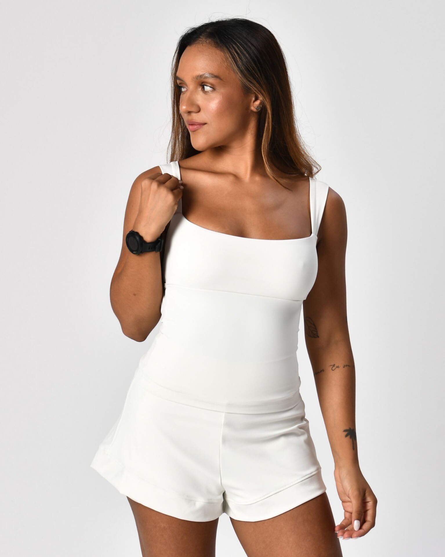 Com certeza você vai se apaixonar pela Regata Flex da Vancci! Ela veste perfeitamente no corpo, valoriza o colo com o decote reto e tem alças mais largas que deixam tudo ainda mais confortável e seguro.