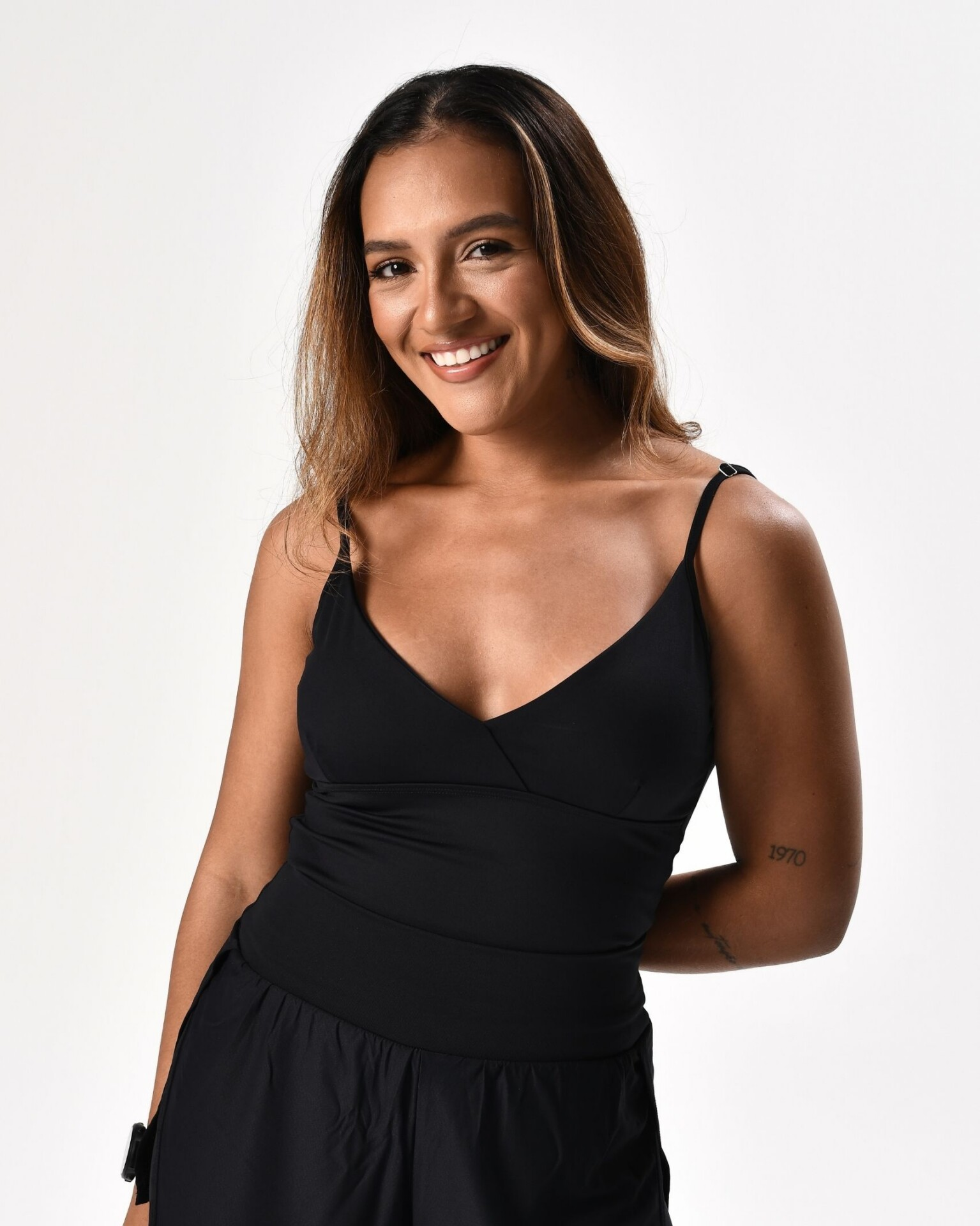 A modelo veste P. Composição: 85% Poliamida 15% Elastano | Compressão: Alta