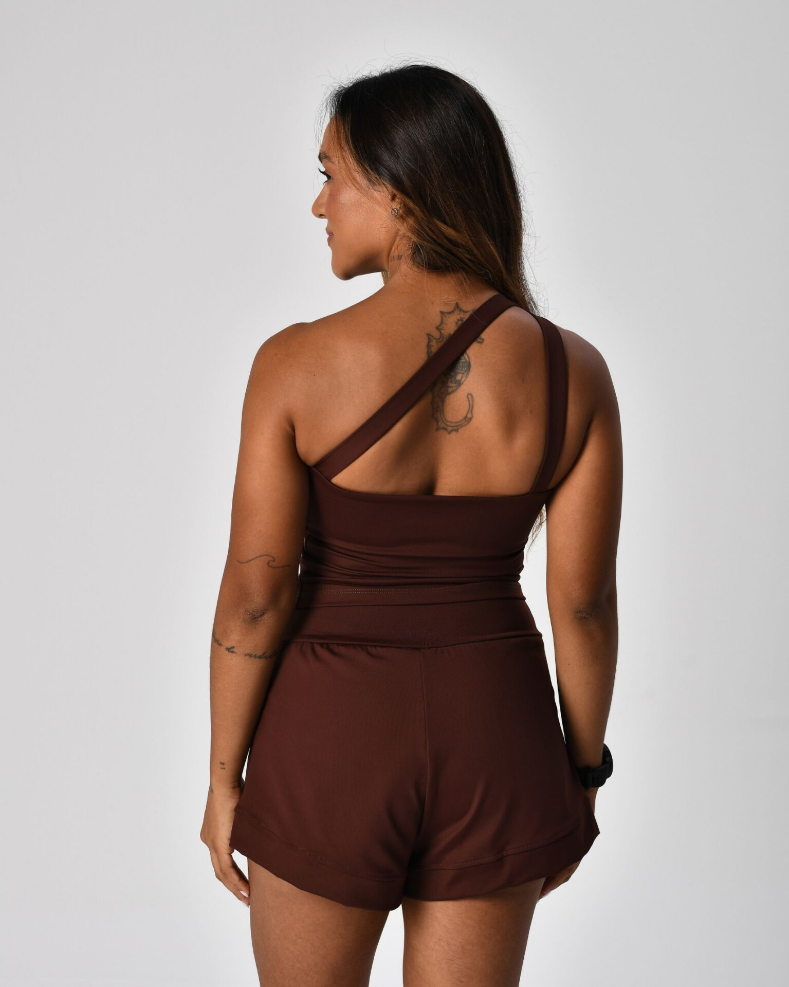 Um ombro só, muito estilo. Com top embutido, a Regata Shoulder combina conforto e elegância, perfeita para quem ama treinar com muito estilo. Foi inspirada no icônico Top Shoulder (queridinho de todas as Vancci Girls), possui um ombro só e é a peça-chave que une design assimétrico, modernidade e beleza!