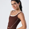 O destaque fica por conta da sobreposição com alcinhas duplas e o contraste de cores que é simplesmente irresistível. Um modelo moderno, delicado e cheio de atitude pra você arrasar em qualquer treino!