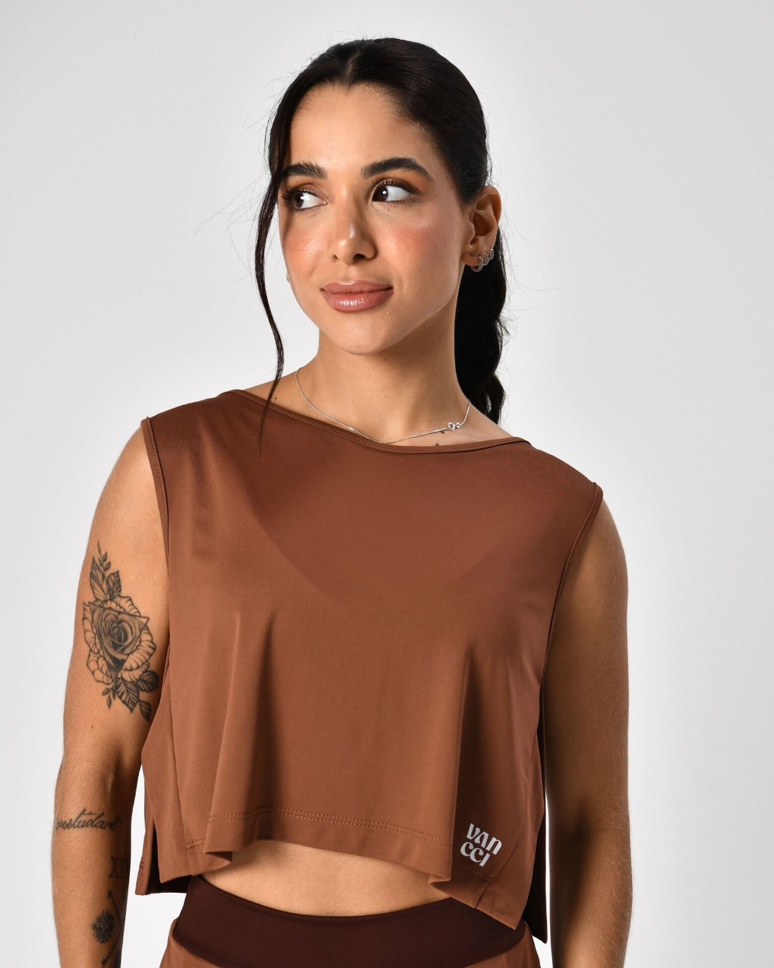 A Regata V foi feita pra quem ama um visual descomplicado, leve e cheio de estilo! Possui modelagem cropped e detalhe vazado em V nas laterais, ela tem caimento soltinho que traz movimento e conforto ao look. Feita em tecido leve e respirável, é ideal pra quem busca liberdade e conforto nos treinos ou no dia a dia. O logo frontal finaliza com o toque minimalista e moderno da Vancci.
