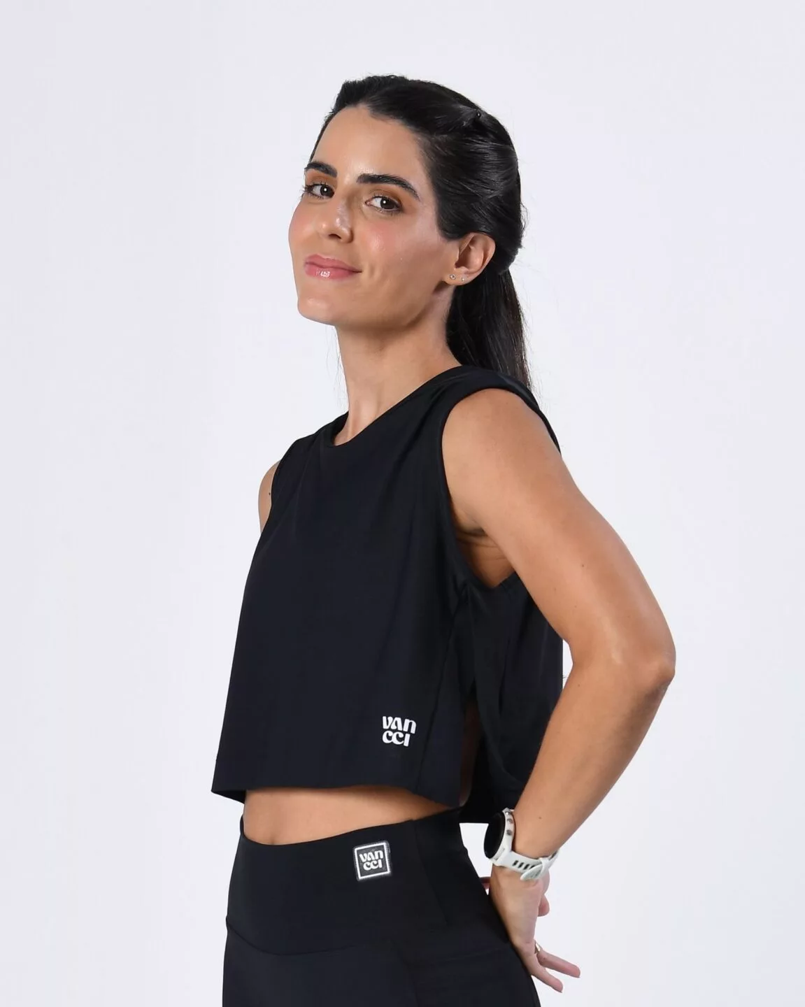 A Regata V foi feita pra quem ama um visual descomplicado, leve e cheio de estilo! Possui modelagem cropped e detalhe vazado em V nas laterais, ela tem caimento soltinho que traz movimento e conforto ao look. Feita em tecido leve e respirável, é ideal pra quem busca liberdade e conforto nos treinos ou no dia a dia. O logo frontal finaliza com o toque minimalista e moderno da Vancci.