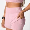 Foi pensado para ser um short confortável, estiloso (ao mesmo tempo muito fofo) e podendo ser usado na prática de vários esportes: corrida, musculação, crossfit, tênis, beach tenis…