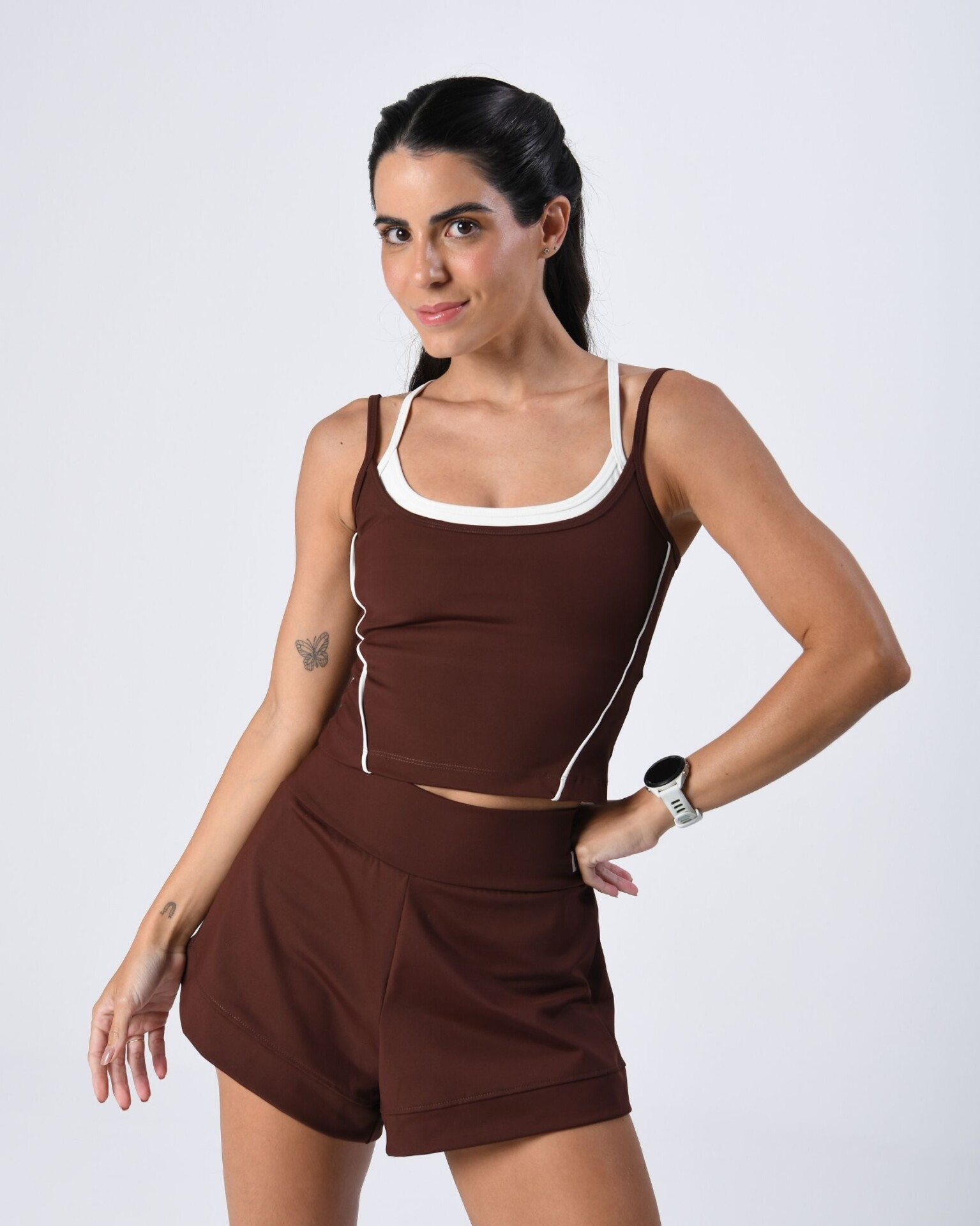 Foi pensado para ser um short confortável, estiloso (ao mesmo tempo muito fofo) e podendo ser usado na prática de vários esportes: corrida, musculação, crossfit, tênis, beach tenis…