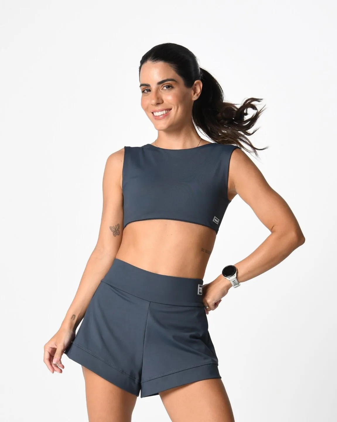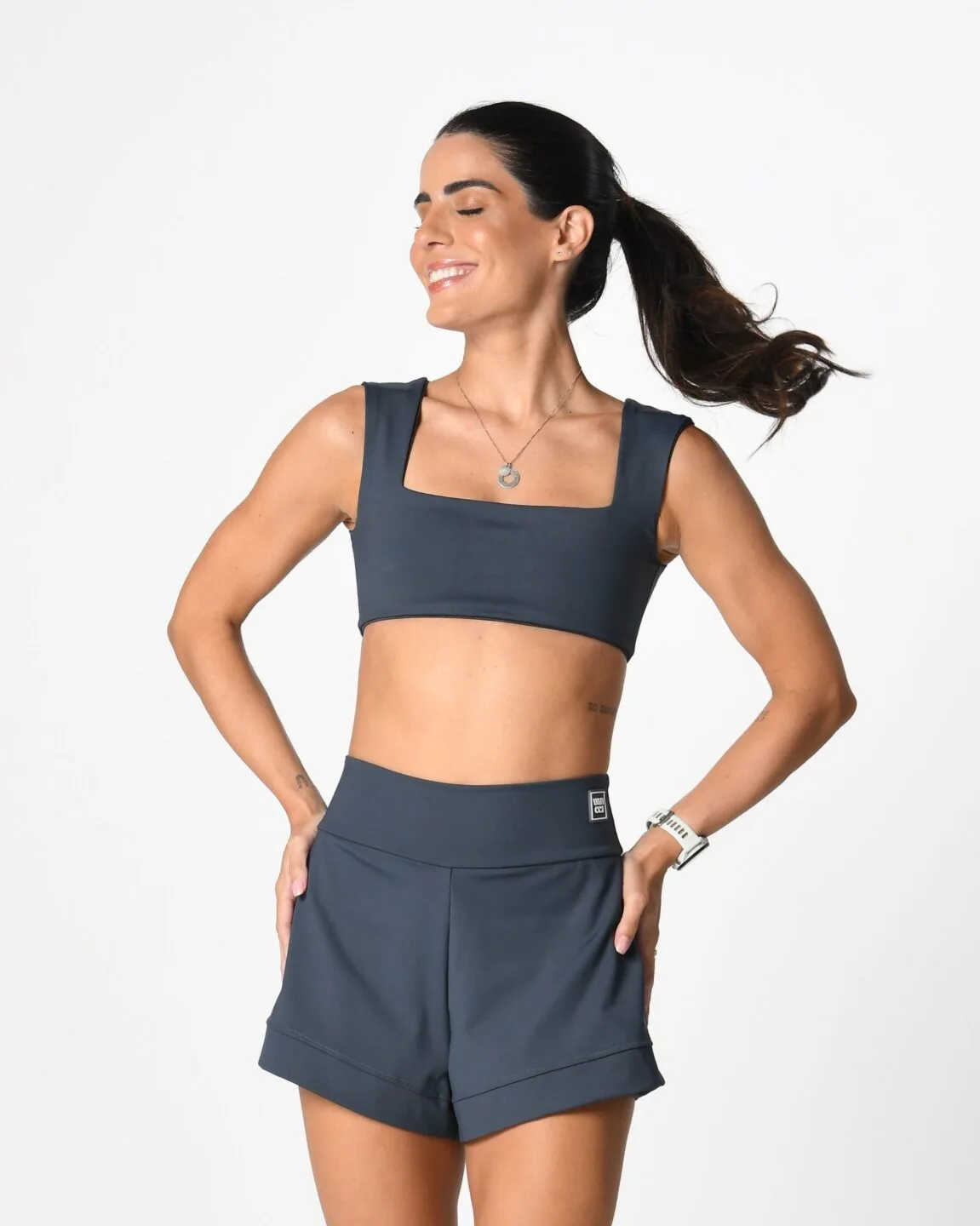 Foi pensado para ser um short confortável, estiloso (ao mesmo tempo muito fofo) e podendo ser usado na prática de vários esportes: corrida, musculação, crossfit, tênis, beach tenis…