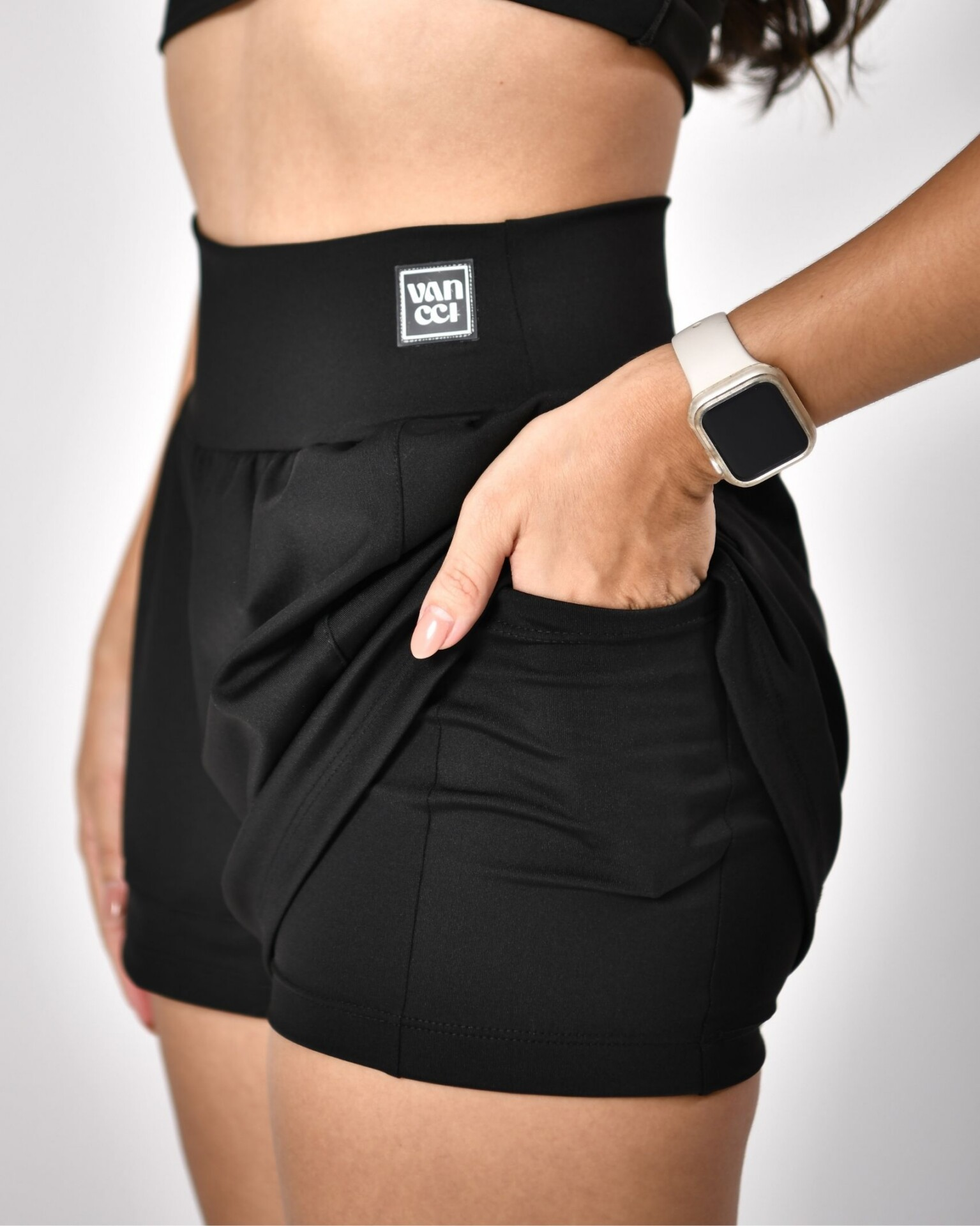O Short Wish é um short duplo, sendo a parte de baixo e a de cima feitas do mesmo tecido. Por possuir um short interno, ele proporciona muito mais conforto e segurança no treino, além de ser muito lindo! Ele possui 2 bolsos nas laterais do short interno, possibilitando que você guarde celular, chaves, cartão, gel de carboidrato ou o que quiser dentro dele.
