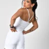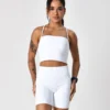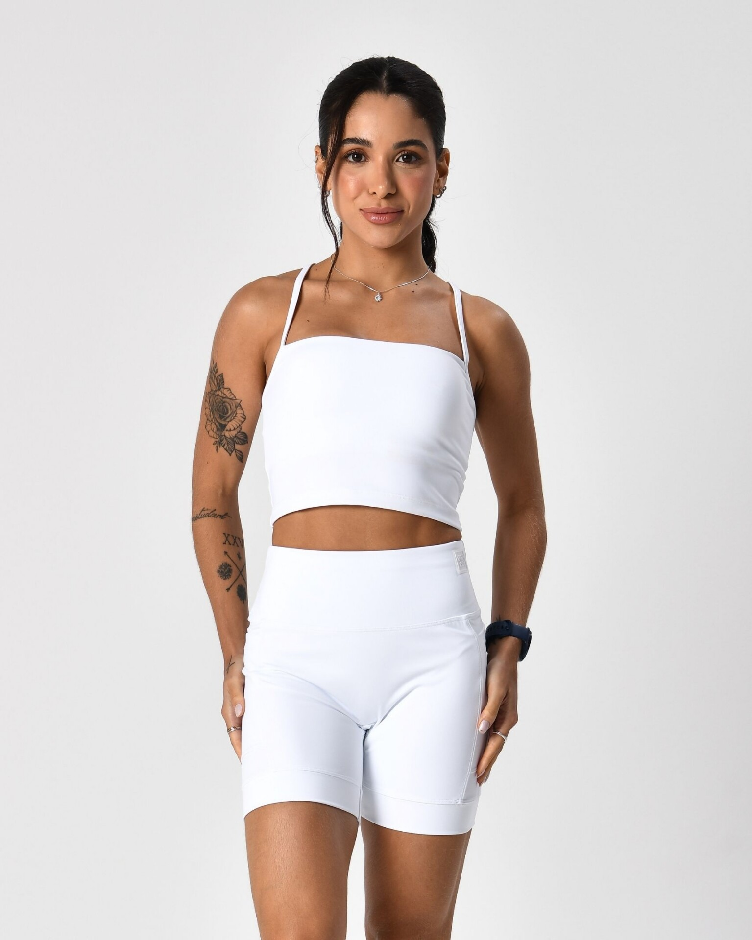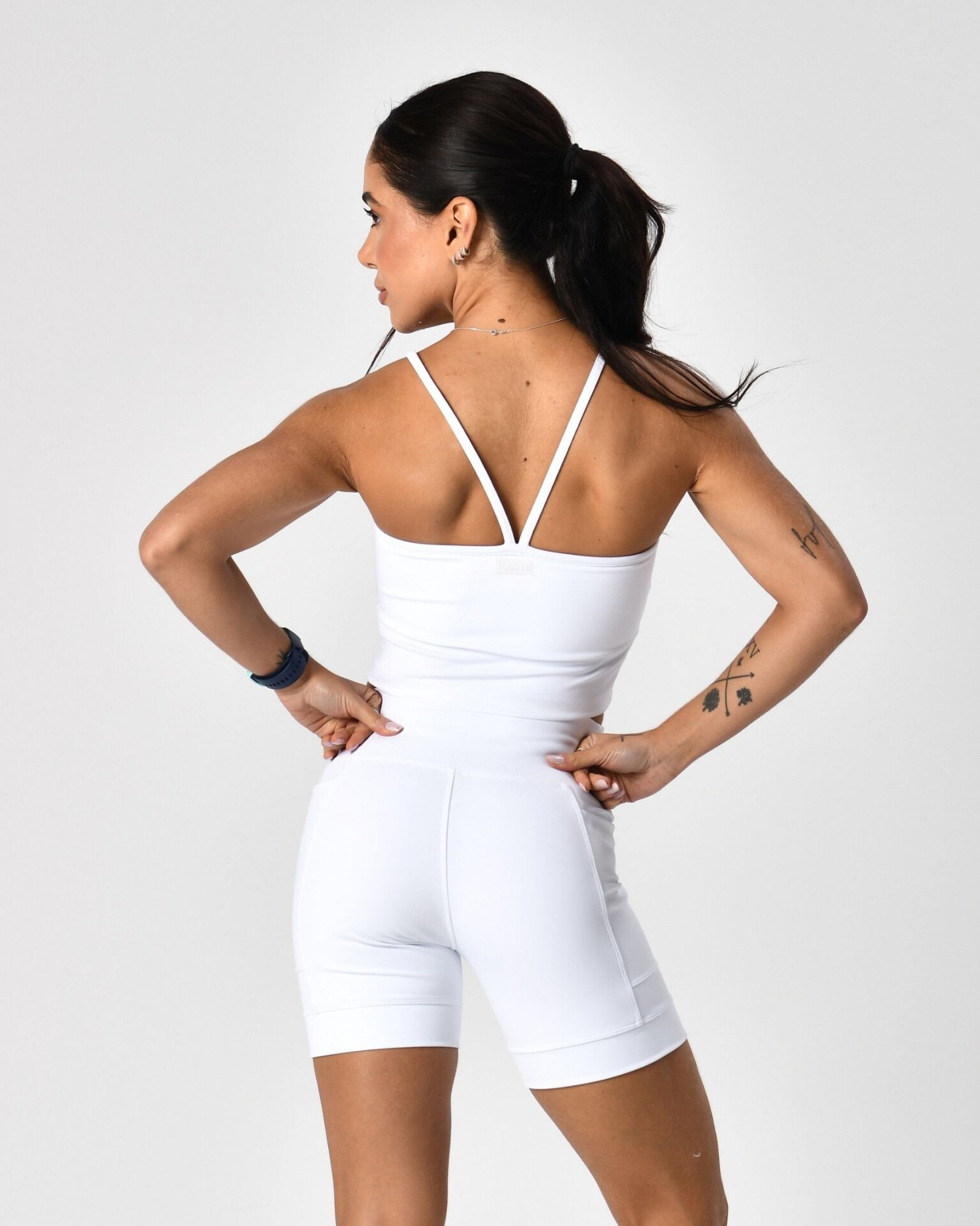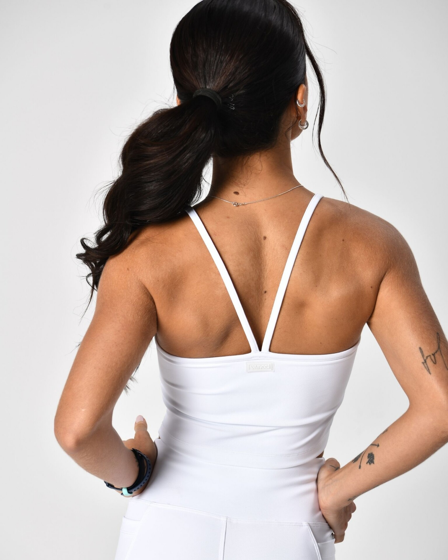 O Top Crop é a definição de elegância minimalista. Com decote reto e alcinhas finas, ele traz uma modelagem moderna que valoriza o colo e os ombros, sem abrir mão do conforto. As costas com tiras cruzadas dão um toque delicado e garantem sustentação na medida certa. Perfeito pra treinar com estilo, compor looks casuais ou usar no dia a dia com aquele toque sofisticado que é a cara da Vancci!