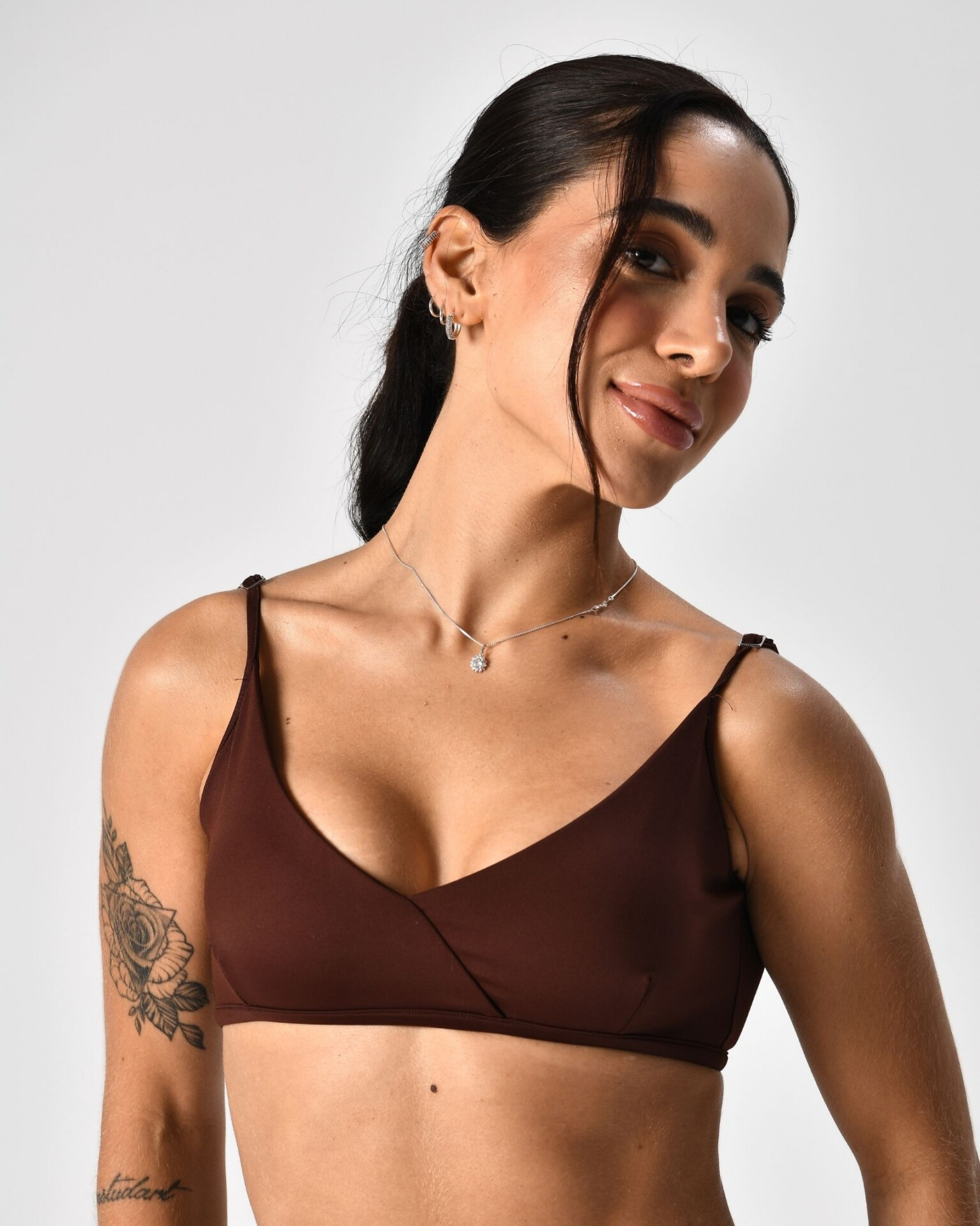 Delicado, feminino e cheio de charme: o Top Glam valoriza o busto com o decote transpassado que desenha o colo de um jeito lindo. Ele traz aquele equilíbrio perfeito entre leveza e presença, deixando o visual marcante na medida certa.