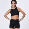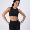 Top estilo cropped que garante excelente sustentação e beleza em uma só peça. Possui frente única e costas estilosas em detalhes de viés, formando um design lindo e autêntico com. Ideal para todos os bustos e confortável para todos os exercícios!