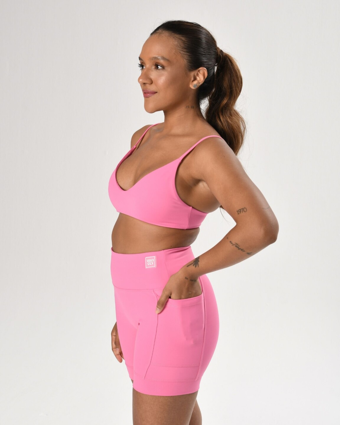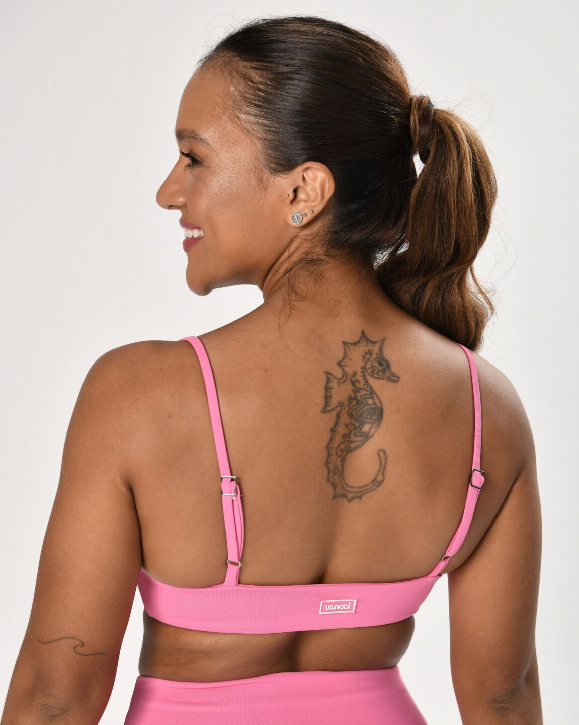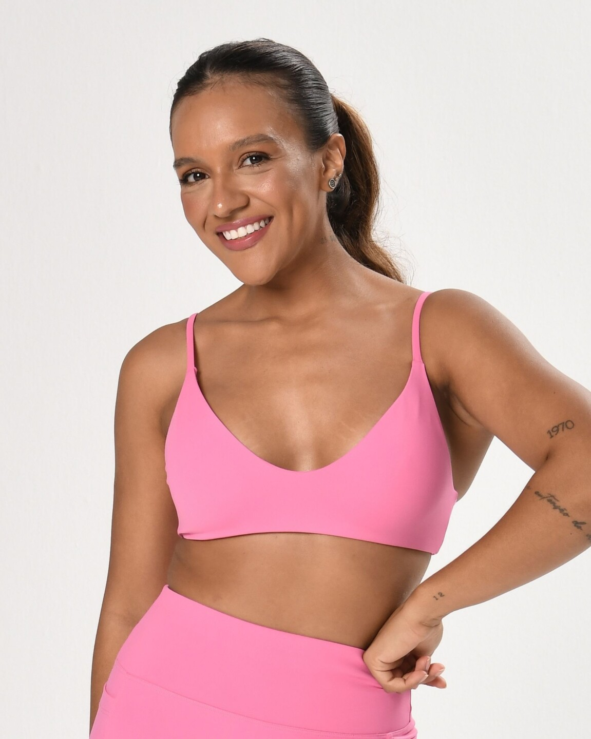 Inspirado nos tops de biquíni, ele é ideal pra quem ama treinar ao ar livre, correr ou pegar sol sem se preocupar com marquinhas — tudo isso sem abrir mão do estilo e do conforto.