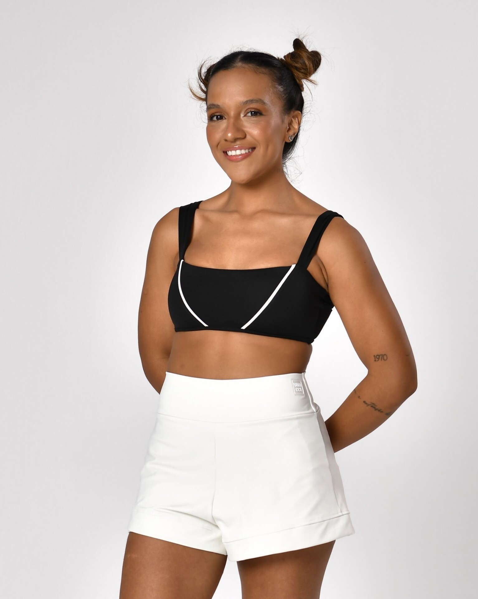 O design bicolor com recortes curvos traz um visual único e super estiloso, valorizando o corpo de forma linda e moderna. É aquela peça que foge do óbvio e transforma o look, perfeita pra quem ama se destacar com elegância.
