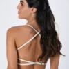 Com modelagem frente única e decote em U que realça o busto, seu grande destaque está nas costas — as alças cruzadas criam um visual moderno e marcante que é simplesmente maravilhoso.
