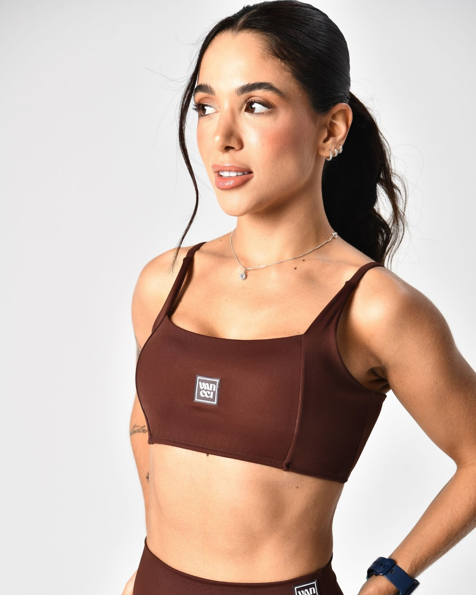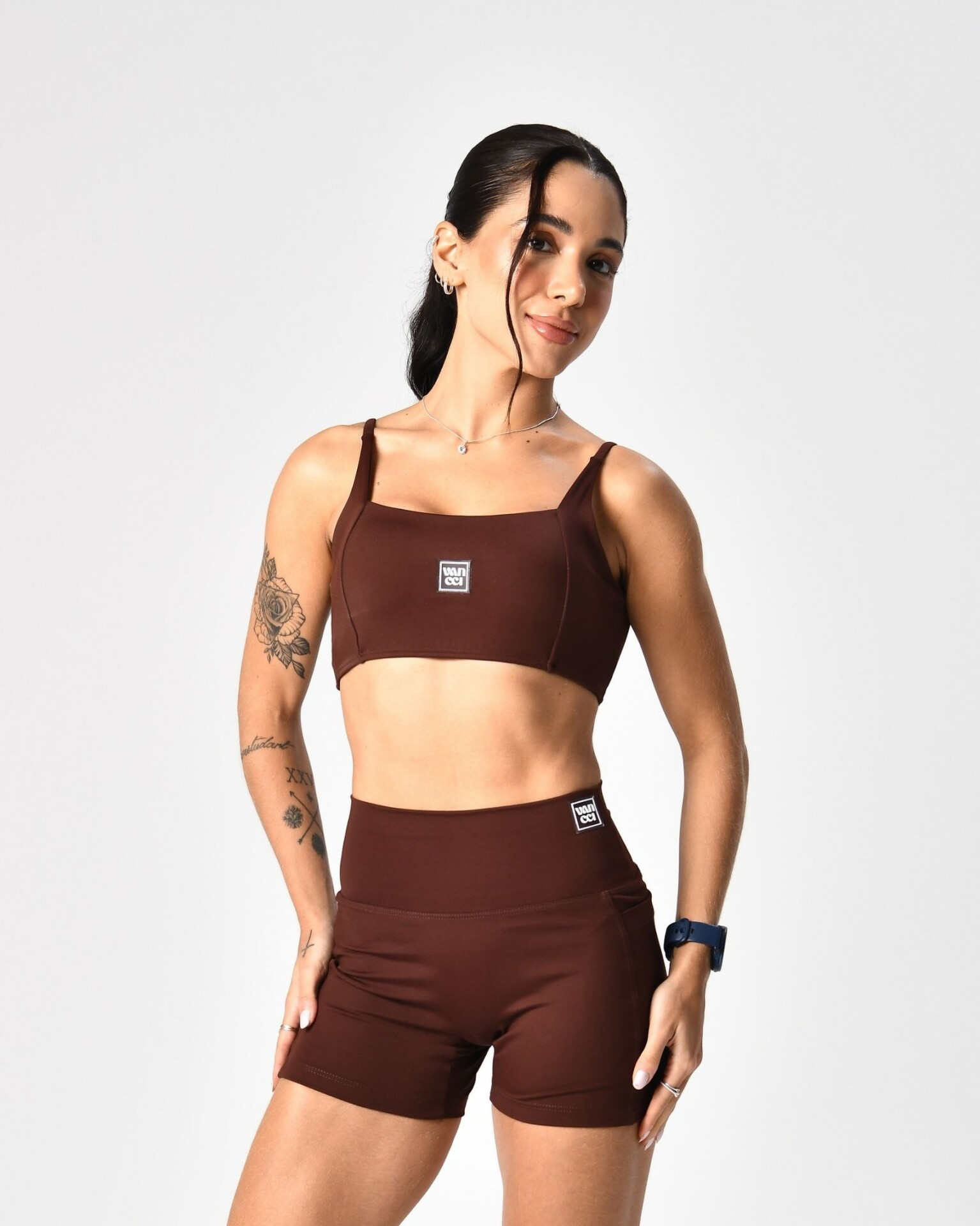 Modelo veste P. Composição: 85% Poliamida 15% Elastano | Compressão: Alta.