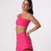 Foi pensado para ser um short confortável, estiloso (ao mesmo tempo muito fofo) e podendo ser usado na prática de vários esportes: corrida, musculação, crossfit, tênis, beach tenis…