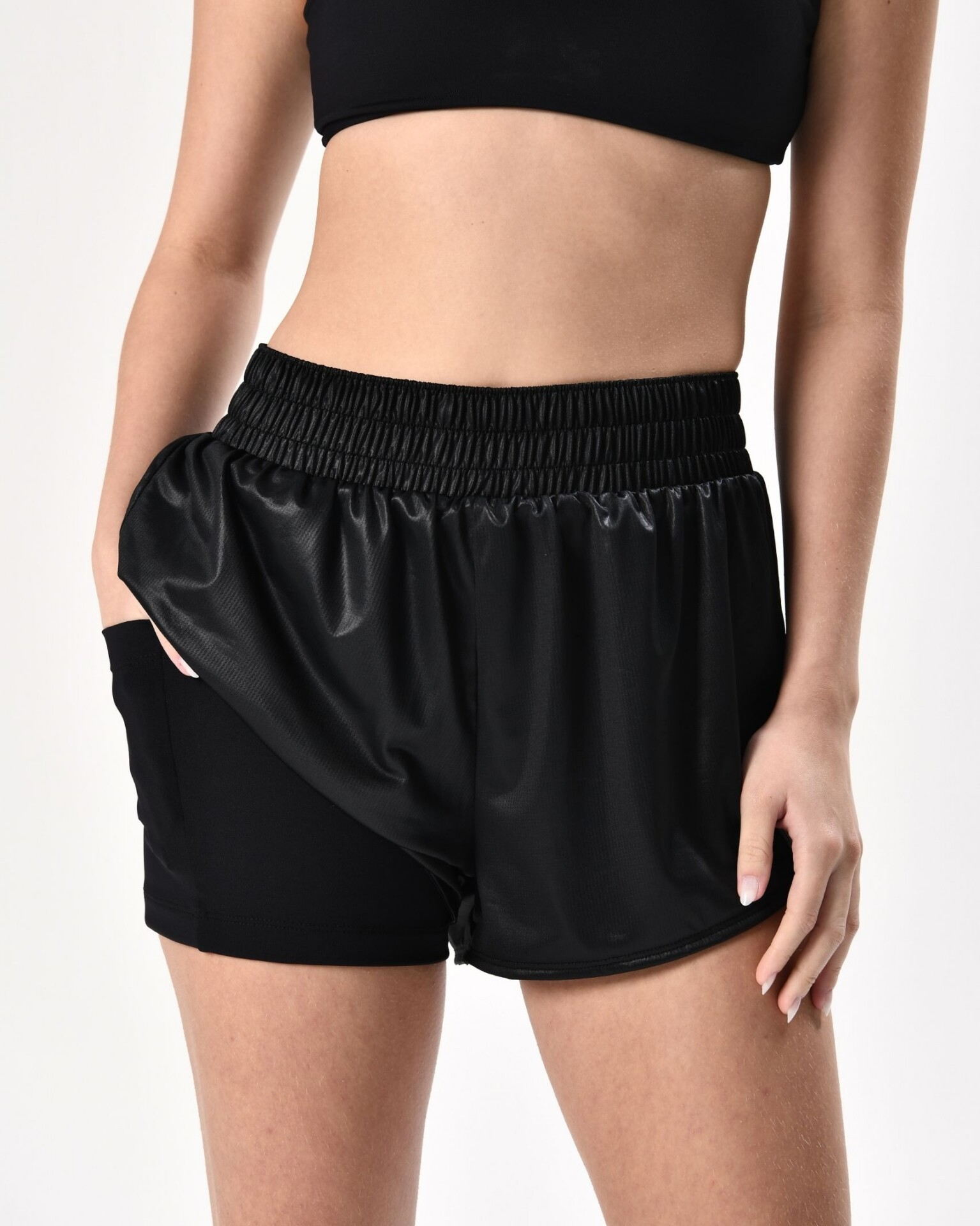 O Short Speed é um short duplo que garante conforto e estilo em uma só peça. Por fora, um tecido leve, com acabamento em cirrê, brilho acetinado e muito lindo. Por dentro, um short mais curto, com tecido de poliamida e bolso interno, sendo também super funcional. Foi pensado principalmente para as Vancci girls que amam correr, por isso é um short que garante muita mobilidade e segurança! É perfeito!