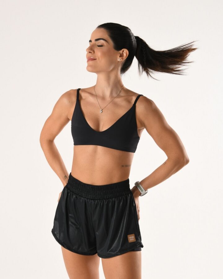 O Short Speed é um short duplo que garante conforto e estilo em uma só peça. Por fora, um tecido leve, respirável e com acabamento WR que repele a água, além de ter tecnologia easycare, ou seja, possui secagem rápida e não precisa passar. Por dentro, um short mais curto, com tecido de poliamida e bolso interno, sendo também super funcional. Foi pensado principalmente para as Vancci girls que amam correr, por isso é um short que garante muita mobilidade e segurança! É perfeito!