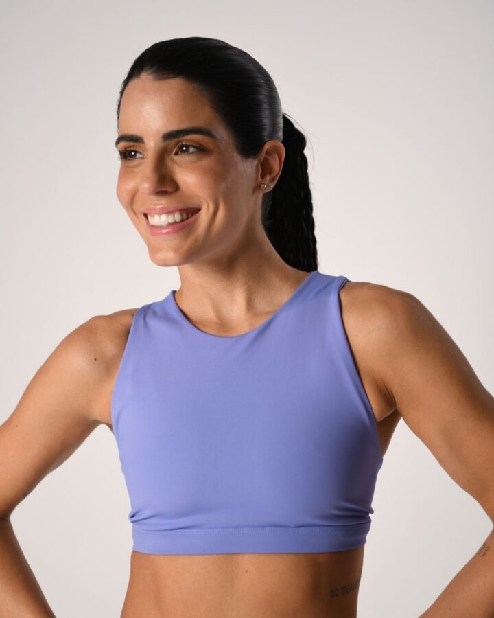 Top estilo cropped que garante excelente sustentação e beleza em uma só peça. Possui frente única e costas estilosas em detalhes de viés, formando um design lindo e autêntico com. Ideal para todos os bustos e confortável para todos os exercícios!