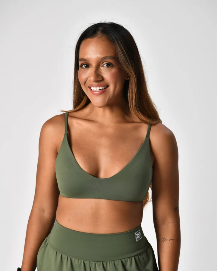 Inspirado nos tops de biquíni, ele é ideal pra quem ama treinar ao ar livre, correr ou pegar sol sem se preocupar com marquinhas — tudo isso sem abrir mão do estilo e do conforto.