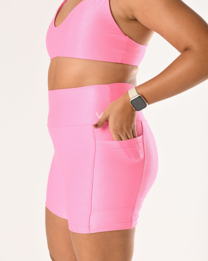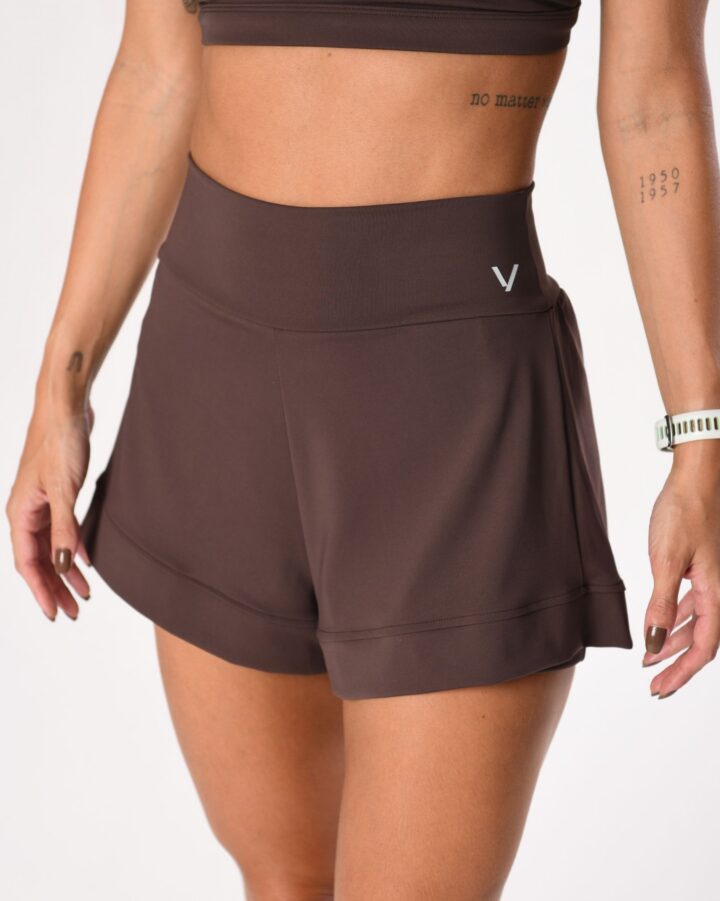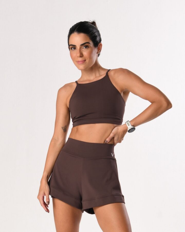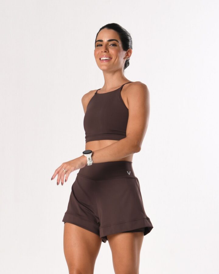 Foi pensado para ser um short confortável, estiloso (ao mesmo tempo muito fofo) e podendo ser usado na prática de vários esportes: corrida, musculação, crossfit, tênis, beach tenis…